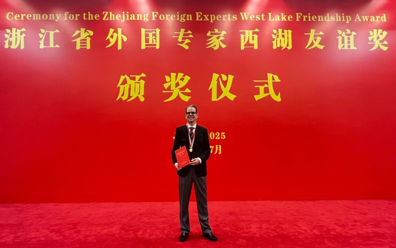 7月8日上午,2024年度浙江省外國(guó)專家“西湖友誼獎(jiǎng)”頒獎(jiǎng)典禮在浙江省人民大會(huì)堂舉行。斯蒂芬·沃勒教授(Dr. Stefan M.F. Waller)參加儀式并接受表彰。