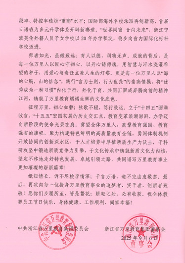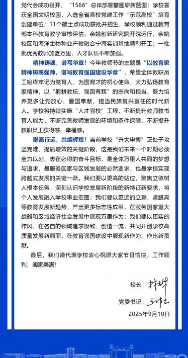 教師們對學(xué)校的關(guān)懷和祝福表示衷心感謝,對近年來學(xué)校各方面發(fā)展倍感自豪。大家紛紛表示,將把學(xué)校的關(guān)心和支持轉(zhuǎn)化為立德樹人、潛心科研的強大動力,堅守教育初心,擔(dān)當(dāng)育人使命,為學(xué)校事業(yè)發(fā)展作出更多貢獻。